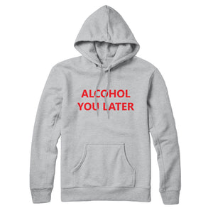 Stay warm while keeping it lighthearted with our “Alcohol You Later†hoodie! It's a funny sweatshirt with a hilariously punny message that'll make people smile. And oh yeah, it also happens to be cozy and super-soft - so you can drink up the compliments in comfort!
