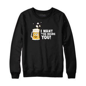 Introducing our hilarious "I Want to be Inside You" beer sweatshirt! This tongue-in-cheek garment is perfect for beer enthusiasts with a great sense of humor. Crafted with utmost comfort in mind, this sweatshirt features a soft and cozy blend of materials that will keep you warm during chilly nights at the pub or relaxed evenings at home. The bold and witty statement on the front will undoubtedly make heads turn and elicit laughter wherever you go. Whether you're a beer connoisseur or simply appreciate a good laugh, this sweatshirt is a must-have addition to your wardrobe. Embrace the fun and quirkiness, and let your beer-loving spirit shine with this cheeky sweatshirt! Cheers!