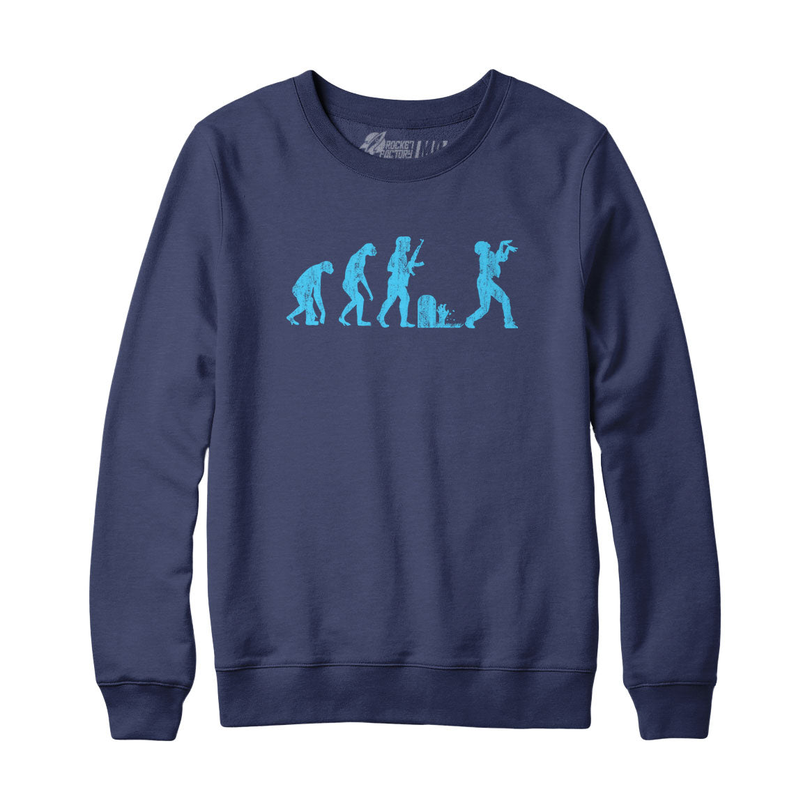 Zombies. Everybody loves a good zombie sweatshirt. These evolution of a zombie sweatshirts are the perfect novelty for getting laughs and attention. On top of all the attention- its soft and comfortable.