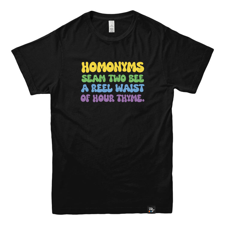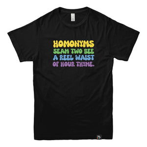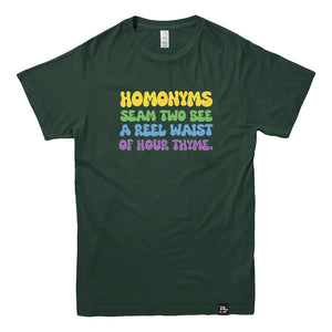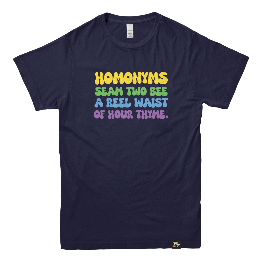 The Homonyms: Waist of Thyme T-shirt is made for anyone who appreciates wordplay so bad it’s good. Packed with intentionally mixed-up homonyms, it’s a cheeky celebration of language, laughter, and the joy of getting things delightfully wrong on purpose.