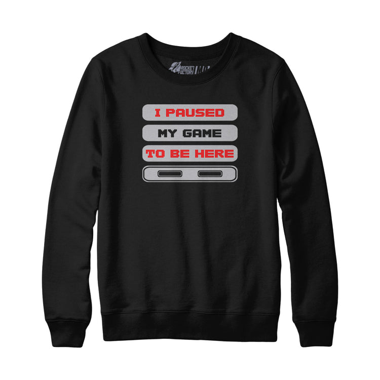 An amazing funny sweatshirt for the hard core gamers. I paused my game to be here graphic sweatshirts are your new favorite artical of clothing. Printed with softhand inks, these come in both mens and ladies versions, for gamers in every shape and size.