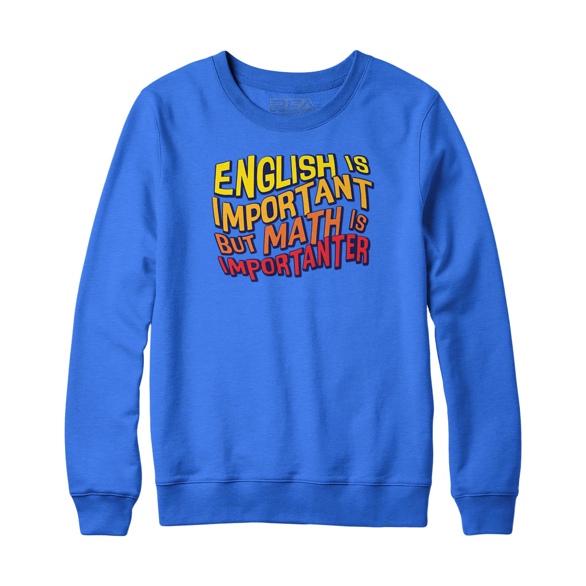 Introducing our hilarious "English is important but Math is importanter" sweatshirt! If you're a fan of witty wordplay and want to show off your love for math, this sweatshirt is a must-have addition to your wardrobe.