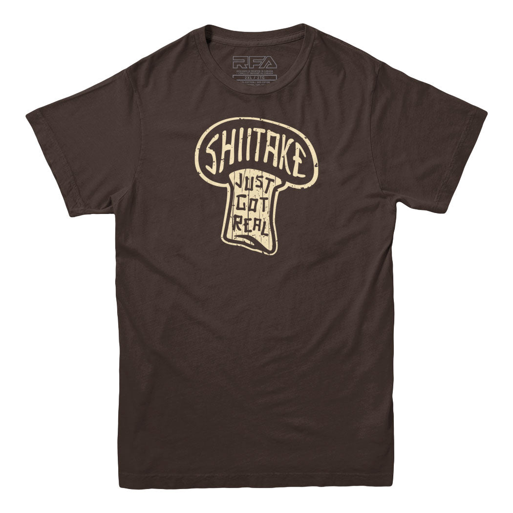 You're sure to get some chuckles wearing this Shiitake Just Got Real t-shirt. These are 100% Cotton T-shirts for extra comfort.
