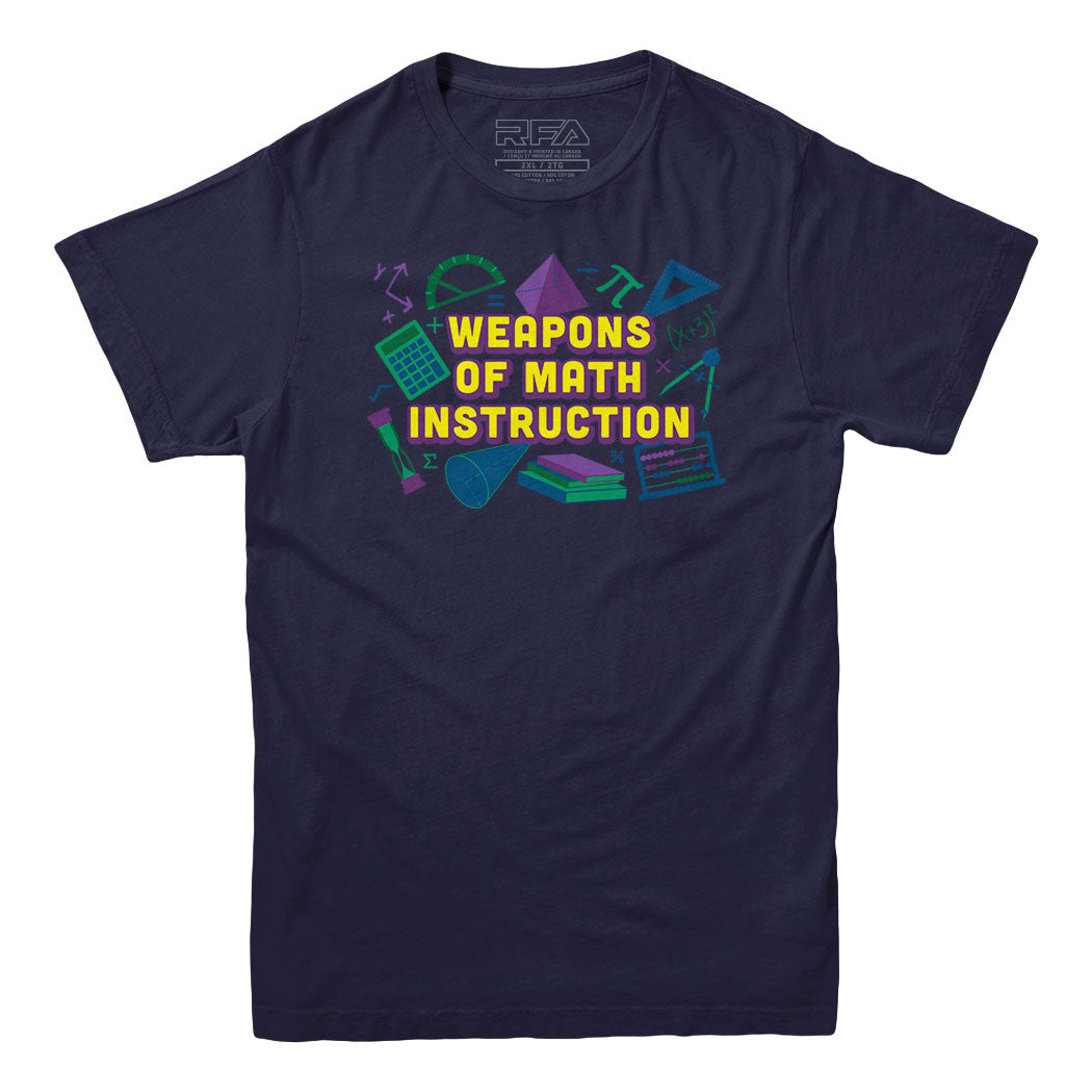 Introducing our hilarious "Weapons of Math Instruction" cotton t-shirt! If you're a math enthusiast with a playful side, this shirt is a must-have. The design showcases an arsenal of math instruction "weapons". From rulers and protractors to calculators and graph paper, this shirt will make you the ultimate math warrior!