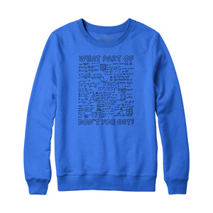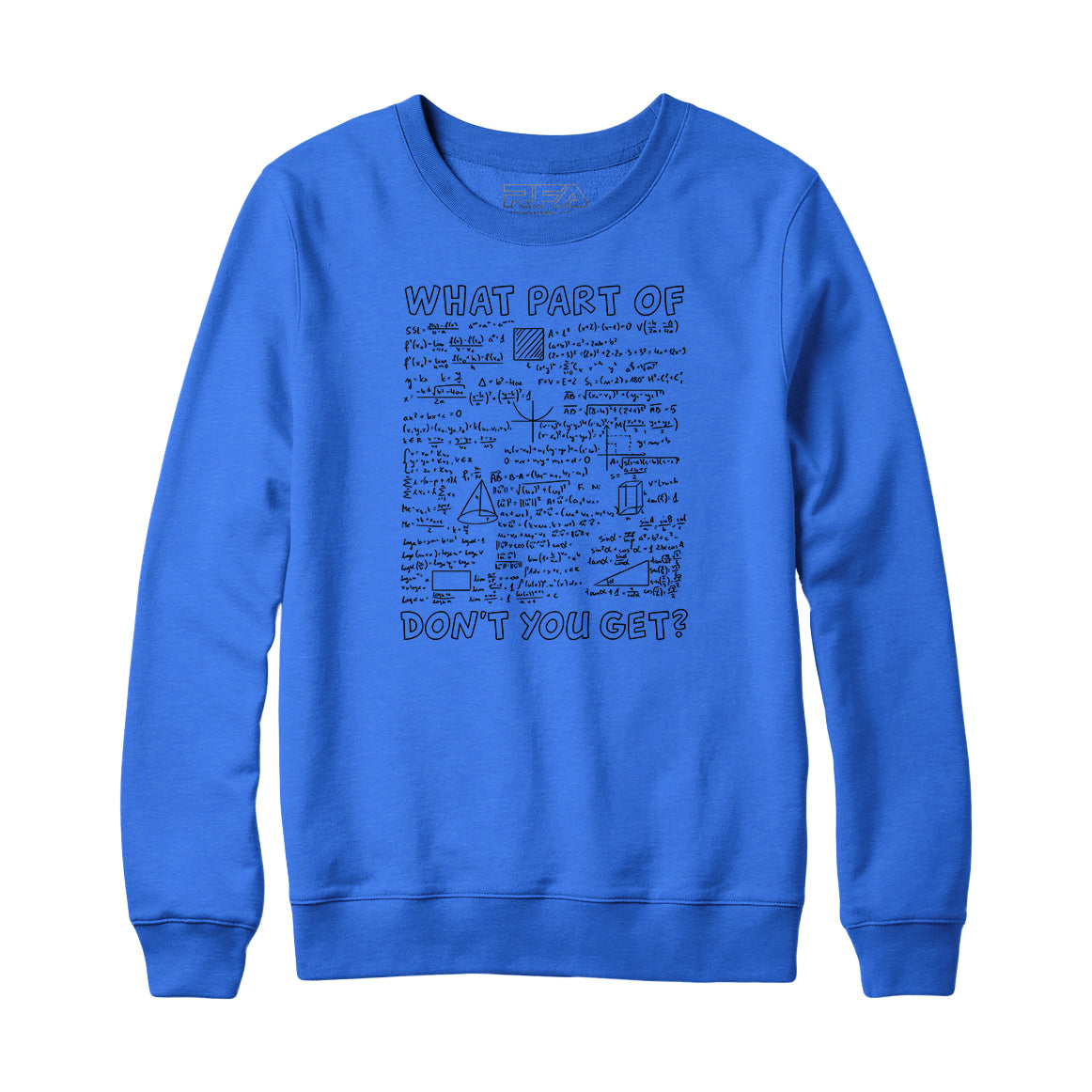 Introducing our "What Part of This Equation Don't You Get" cotton/poly blend sweatshirt and hoodie—perfect for math enthusiasts and lovers of witty humor! This bold garment features a complex math equation design that's sure to turn heads and spark conversations. Whether you're a math whiz or simply enjoy a good laugh, this sweatshirt or hoodie is the ultimate equation fashion statement. Crafted with a cozy cotton/poly blend, it offers warmth, comfort, and a touch of mathematical charm. So, gear up, flaunt your geeky side, and let the world know that you've got equations on your mind and a sense of humor to solve them all!