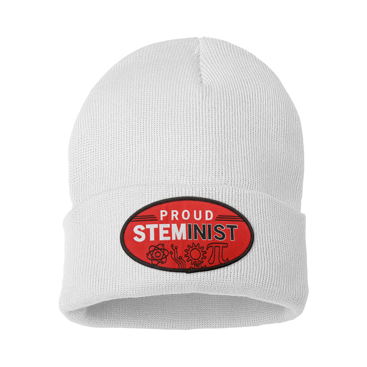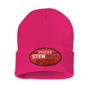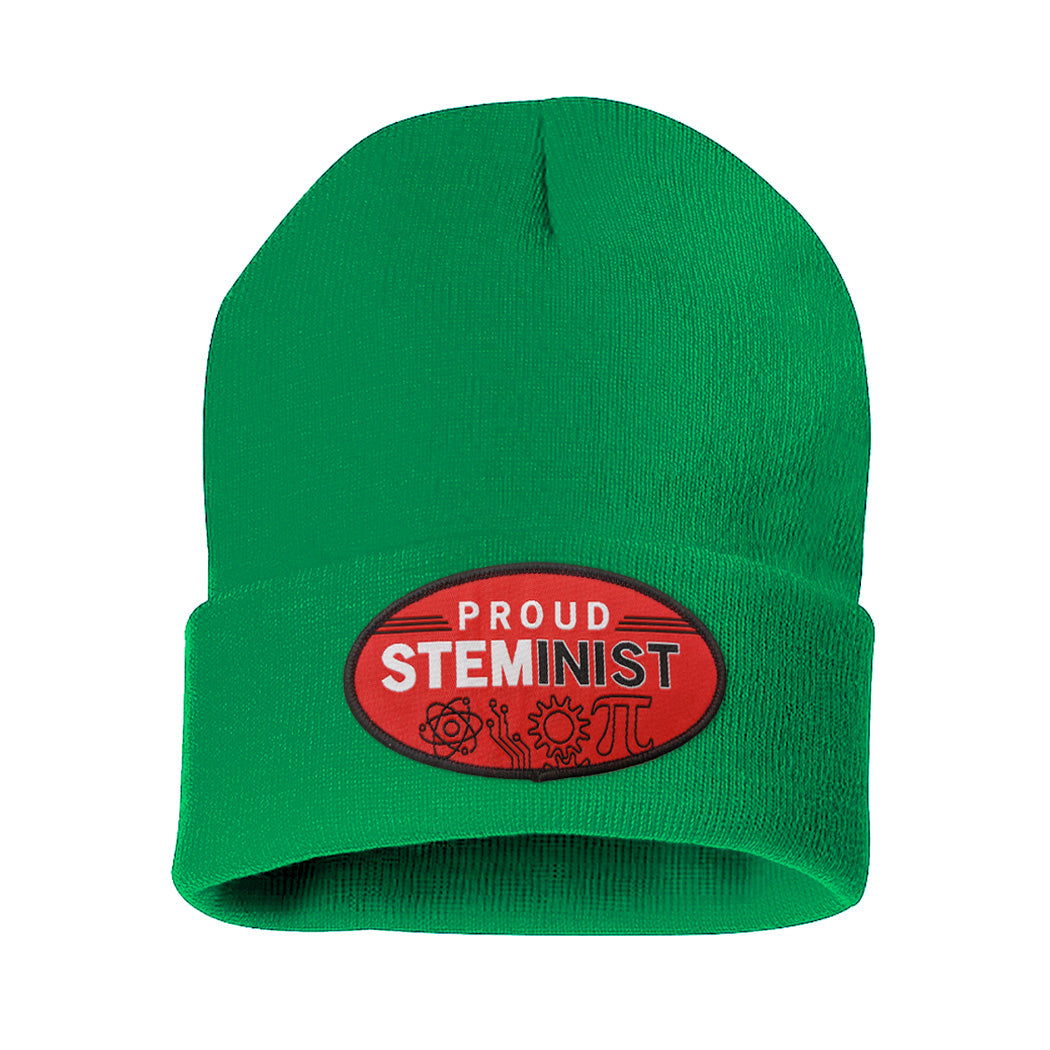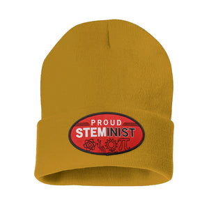 The Proud Steminist Cuff Knit Beanie brings warmth with a message. Soft, comfortable, and easy to wear, it celebrates curiosity, creativity, and the love of all things STEM.