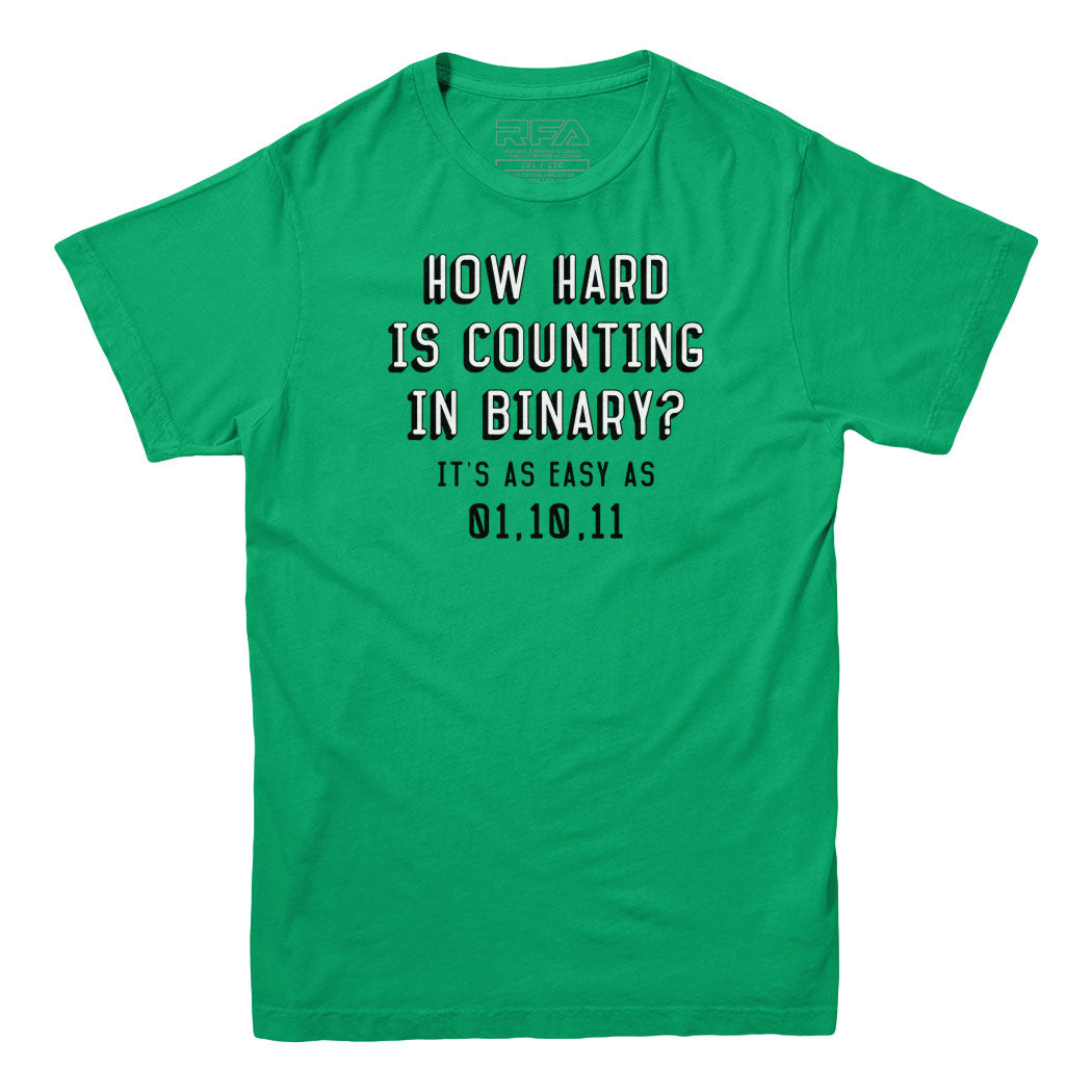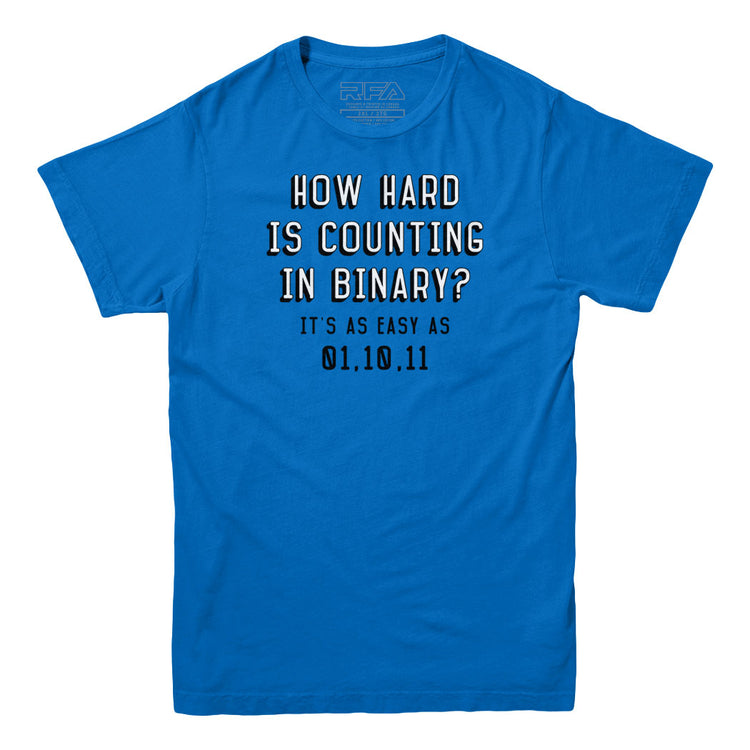 Introducing our side-splittingly funny "How hard is Counting in Binary, it's as easy as 01.10.11" cotton t-shirt! If you're a fan of computer science, coding, or just love a good laugh, this shirt is a perfect fit. The clever slogan playfully suggests that counting in binary, represented by the numbers 01, 10, and 11, is as easy as can be. Crafted with soft and comfortable cotton, this shirt offers a lightweight and breathable feel. Whether you're a coding genius or simply enjoy clever humor, our "How hard is Counting in Binary, it's as easy as 01.10.11" t-shirt will keep you stylishly entertained and proudly showcasing your love for all things techy with a delightful twist. Get ready to add a dose of binary hilarity to your wardrobe!