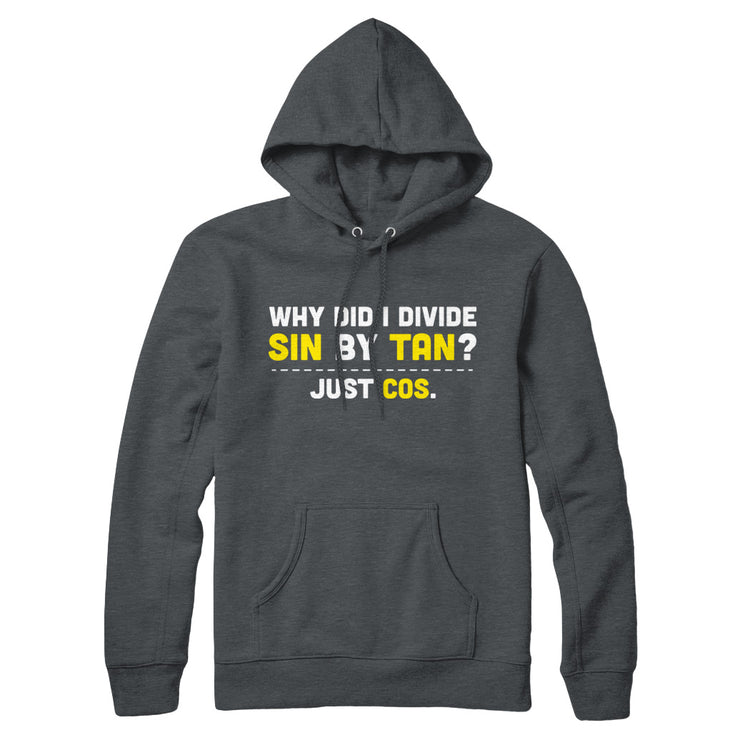 Introducing our hilariously witty "Why did I divide Sin by Tan, just Cos" cotton/poly blend sweatshirt and hoodie! If you're a math enthusiast with a penchant for clever wordplay, this garment is a must-have addition to your wardrobe. The pun-tastic slogan humorously plays with mathematical functions, showcasing your wit and love for numbers. Crafted with a cozy cotton/poly blend, this sweatshirt or hoodie offers both comfort and style. Whether you're a math whiz or simply appreciate a good laugh, our "Why did I divide Sin by Tan, just Cos" apparel will keep you warm, entertained, and proudly displaying your mathematical humor. Get ready to wear your mathematical pun with pride and bring smiles to fellow math aficionados everywhere!