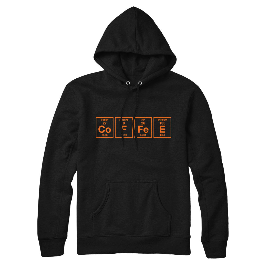 A perfect gift for your caffeinated chemistry friend that is hard to buy for.  These novelty Elements of Coffee sweatshirts will get you the attention and the chuckles you deserve- all while being soft and comfortable at your local coffee shop.