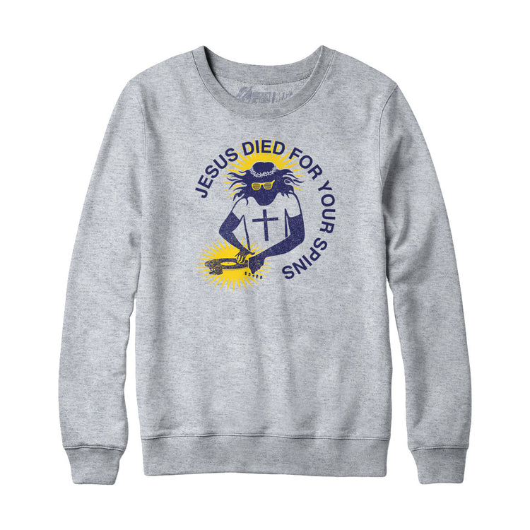 If life was a nightclub, and Christians its ravers- this would be their sweatshirt. If you like music and clubbing, this Jesus Died for your Spins DJ sweatshirt is the hottest ticket. Wear it out to dance, or in your DJ booth- and watch the groupies gather like moths to a light.