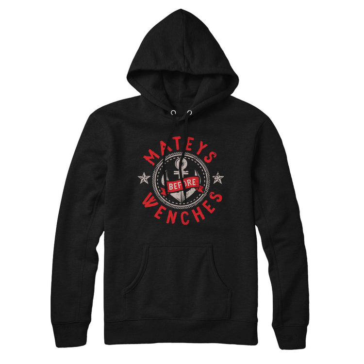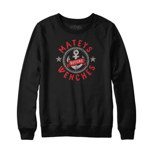 We figured seamen needed their own clever way of saying lets have a boys night out- enter the awesome Mateys before Wenches sweatshirt. Wear it to the yacht club- its bound to make you some new friends