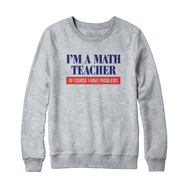 Introducing our hilariously relatable "I'm a Math teacher, of course I have problems" cotton/poly blend fleece sweatshirt! If you're a math teacher or know someone who is, this sweatshirt is a must-have for adding some laughter to the equation.Â