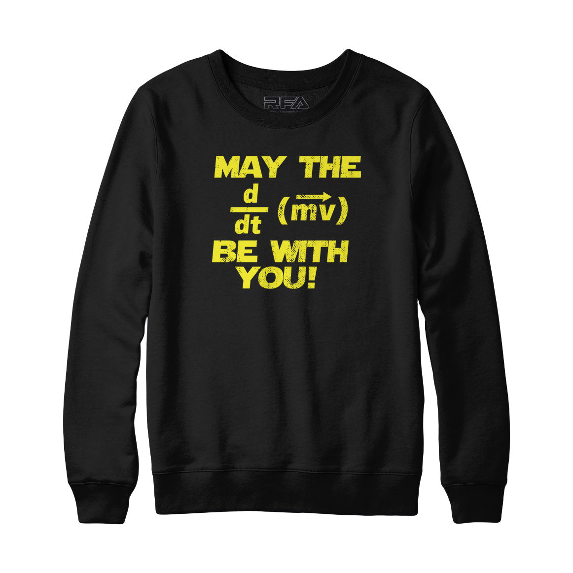 Combine the power of the Force with math humor in this witty math equation sweatshirt proclaiming "May the Force Be With You" showcasing a playful integration of the Star Wars universe and mathematical prowess, making it the perfect sweatshirt for those who appreciate both galaxies far, far away and the beauty of numbers.