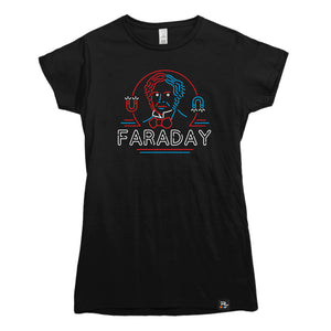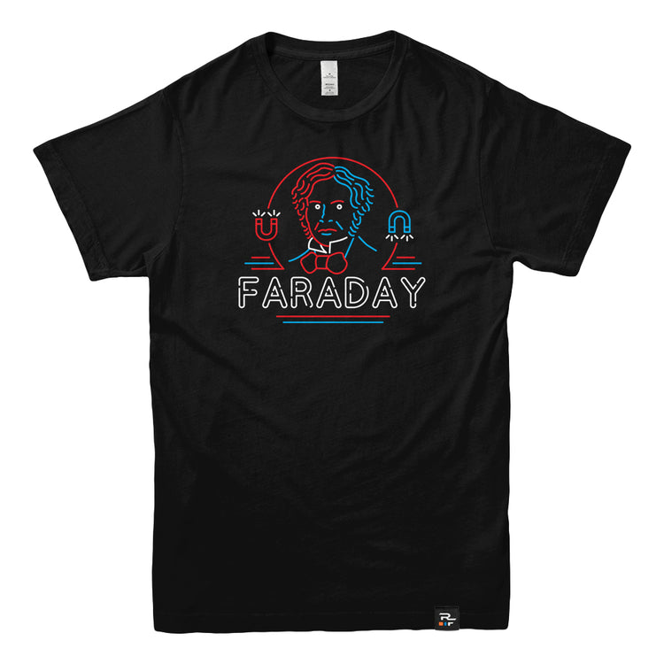 The Neon Faraday T-shirt pays tribute to the father of electromagnetism with a neon-inspired portrait and icons representing his groundbreaking work. The design captures Faraday’s brilliance in a modern, electric style that feels both vintage lab and downtown glow.
