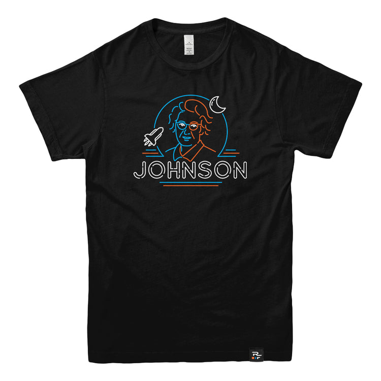The Neon Johnson T-shirt celebrates precision and courage with a neon-inspired portrait and icons representing her contributions to spaceflight and mathematics. It’s diligence with a confident glow.