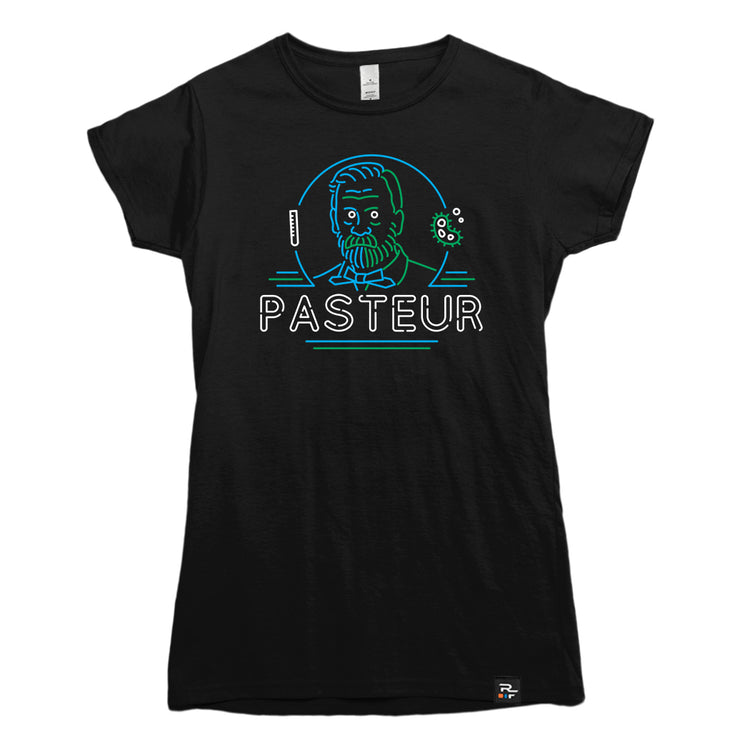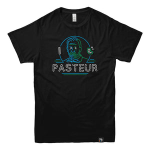 The Neon Pasteur T-shirt salutes the pioneer of microbiology with a neon-inspired portrait and icons representing his breakthroughs in science and public health. It’s a clean, modern nod to the power of careful observation.