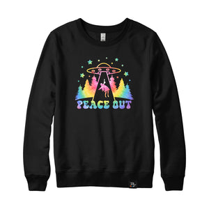The Peace Out UFO design brings interstellar calm with a side of cool. Soft, colorful, and out of this world, it’s made for anyone who believes in good energy, great escapes, and the power of peace—universal style.