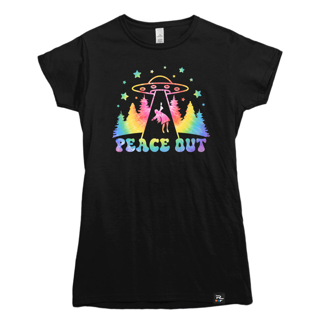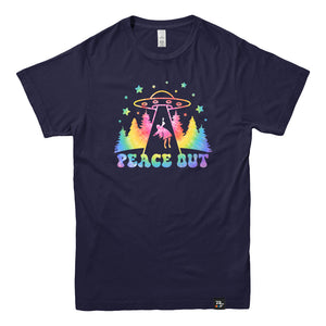 The Peace Out UFO T-shirt is for those ready to rise above it all—literally. With its dreamy colors and spaced-out attitude, it’s a perfect blend of cosmic humor and laid-back good vibes.