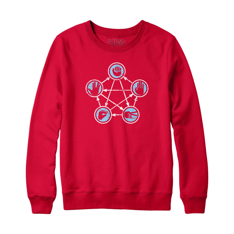Fans of a more rich tapestry of tactics will want to get their hands on this Rock Paper Scissors Lizard Spock Sweatshirt. It really makes the game so much more complicated and fun.