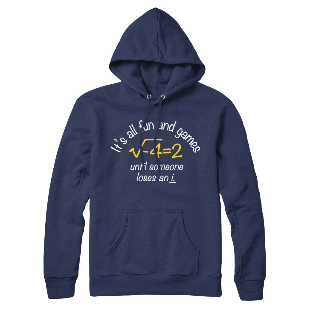 Get ready to embrace the hilariously nerdy side of life with our "It's All fun and Games until someone looses and i" cotton/poly blend sweatshirt and hoodie. This witty and mathematically inclined garment features a bold math formula that yields an irrational number. Perfect for math enthusiasts and lovers of quirky humor, this sweatshirt or hoodie will have you chuckling while flaunting your unique style. Crafted with a comfortable cotton/poly blend, it offers warmth and softness for your utmost comfort. So, whether you're solving equations or simply cracking jokes, our "It's All fun and Games until someone looses and i" apparel will keep you entertained and stylishly geeky.