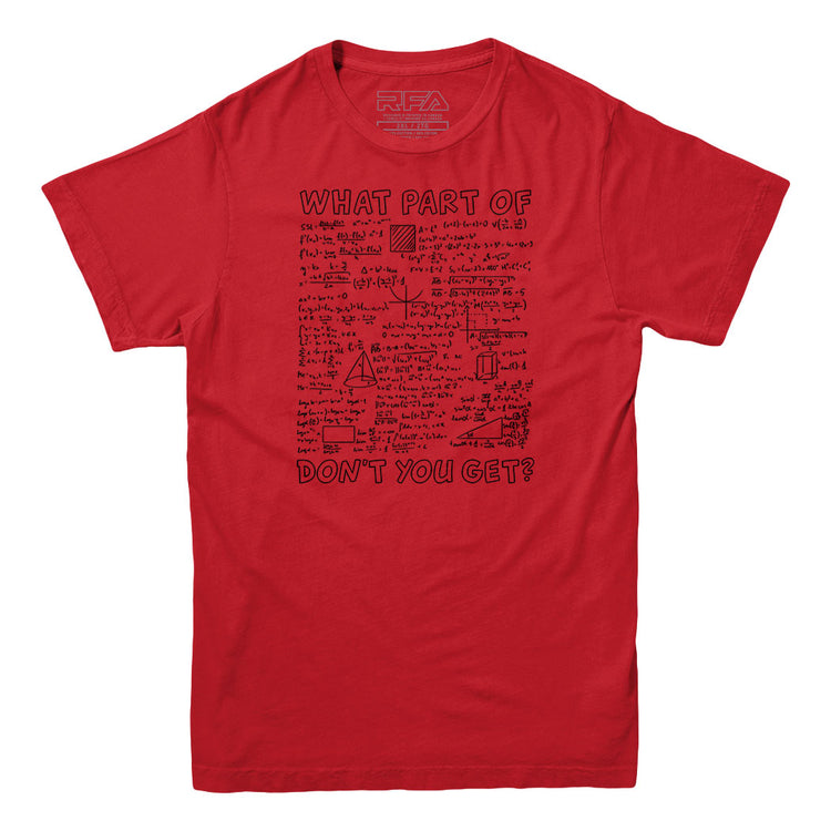 Introducing our hilarious "What Part of This Equation Don't You Get" cotton t-shirt! If you're a math enthusiast or love to tickle your funny bone, this shirt is a perfect fit. Featuring a complex math equation design, it's sure to keep people scratching their heads. Crafted with soft and breathable cotton, this t-shirt offers a comfortable and lightweight feel, making it ideal for everyday wear. Whether you're a math whiz or just enjoy clever humor, our "What Part of This Equation Don't You Get" t-shirt will add a touch of mathematical wit to your wardrobe while keeping everyone guessing about the answer!