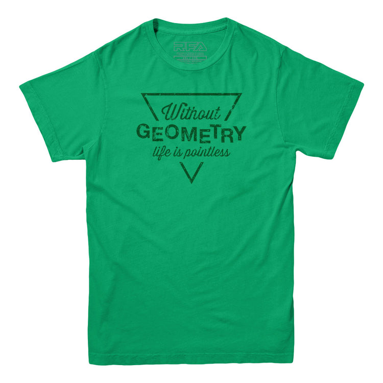 Add a dose of mathematical humor to your wardrobe with this clever t-shirt proclaiming "Without Geometry Life is Pointless," showcasing your appreciation for the importance of geometry in a witty and lighthearted way, making it the perfect shirt for math enthusiasts and those who appreciate a good laugh while highlighting the significance of shapes and angles in our everyday lives.