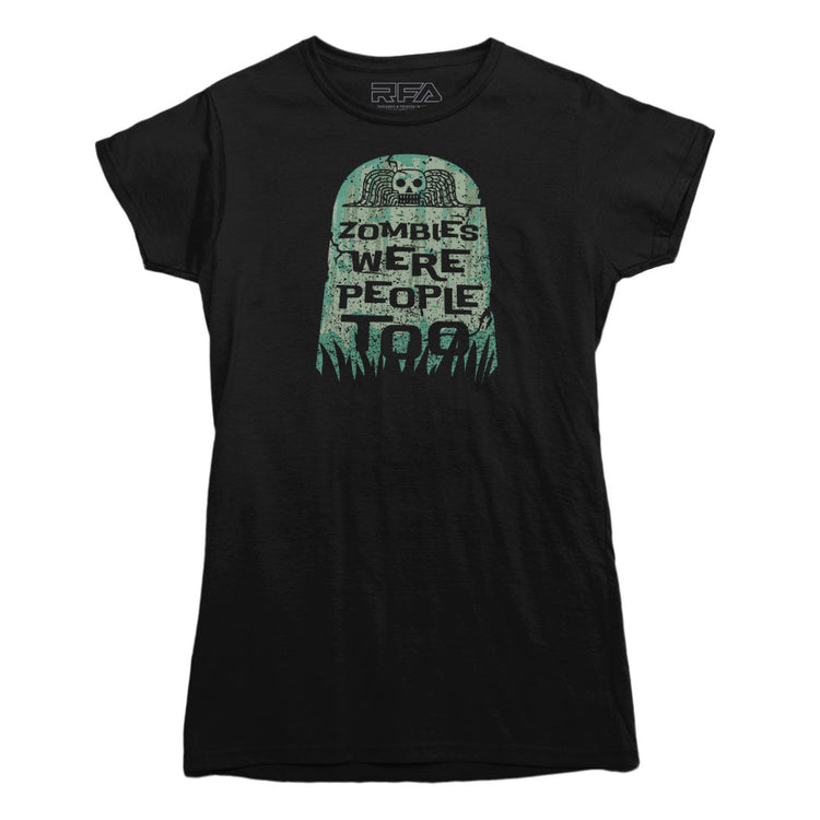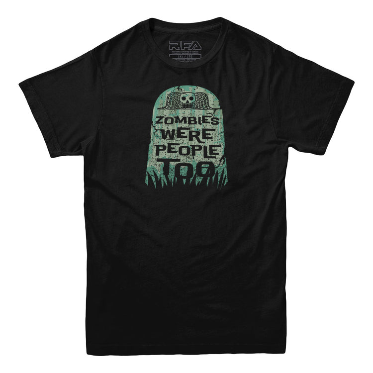 Celebrate the humanity (or lack thereof) of zombies with this lighthearted and witty t-shirt that playfully declares "Zombies Were People Too," reminding us to see the human side of these undead creatures and giving a humorous twist to the horror genre, making it the perfect shirt for fans of zombies, comedy, and embracing the unexpected.